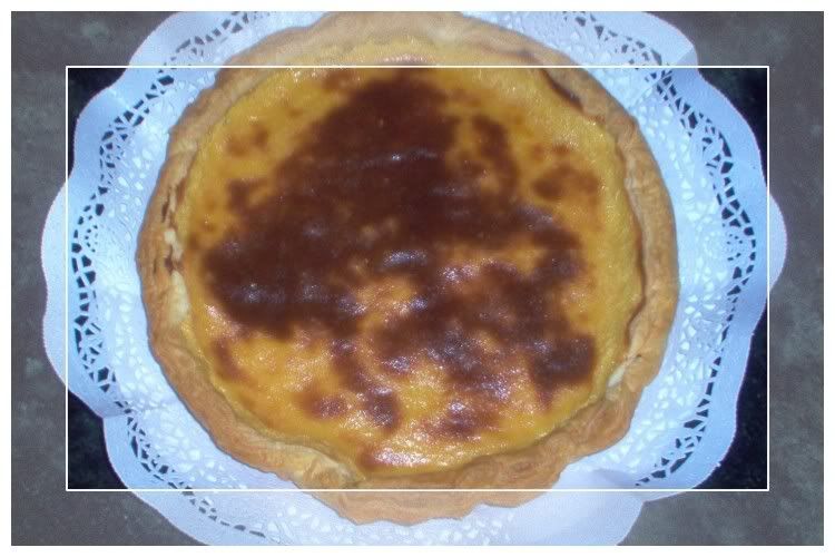 Coloca-se a massa folhada numa tarteira, fazem-se varios furinhos no fundo e vai ao forno.